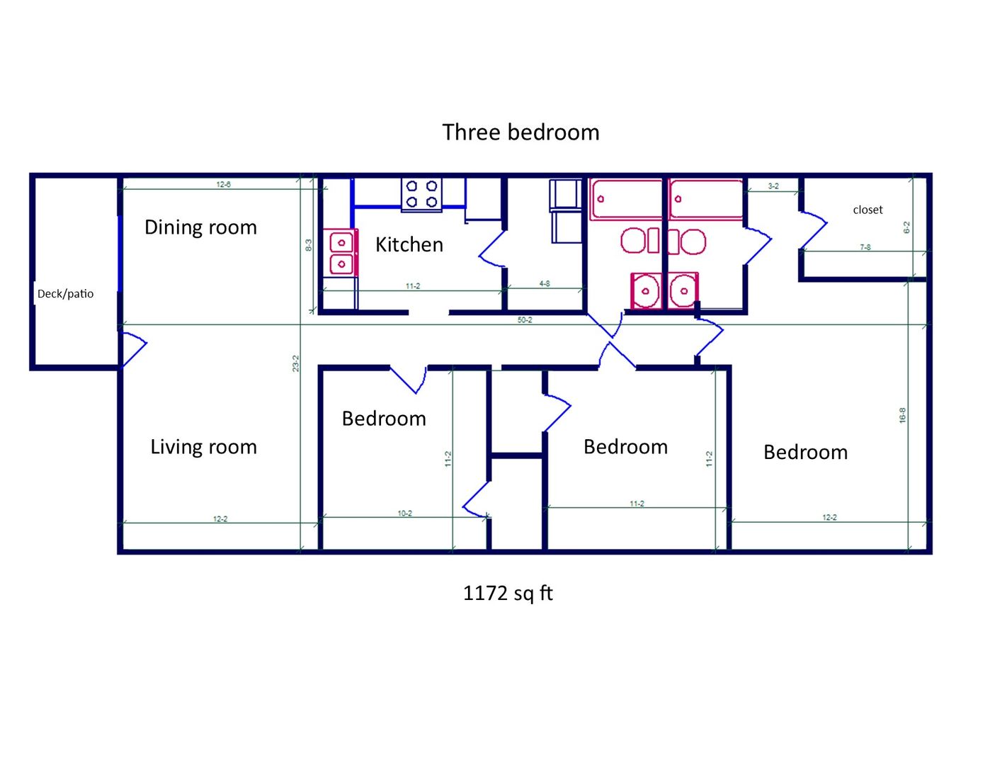 Spacious Three Bedroom/Two Bath With Dining Area