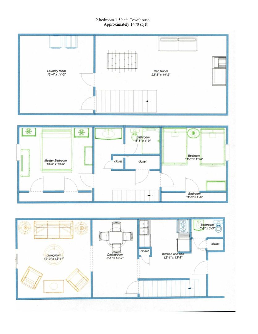 2 bedroom 1.5 bath townhome with 3 levels