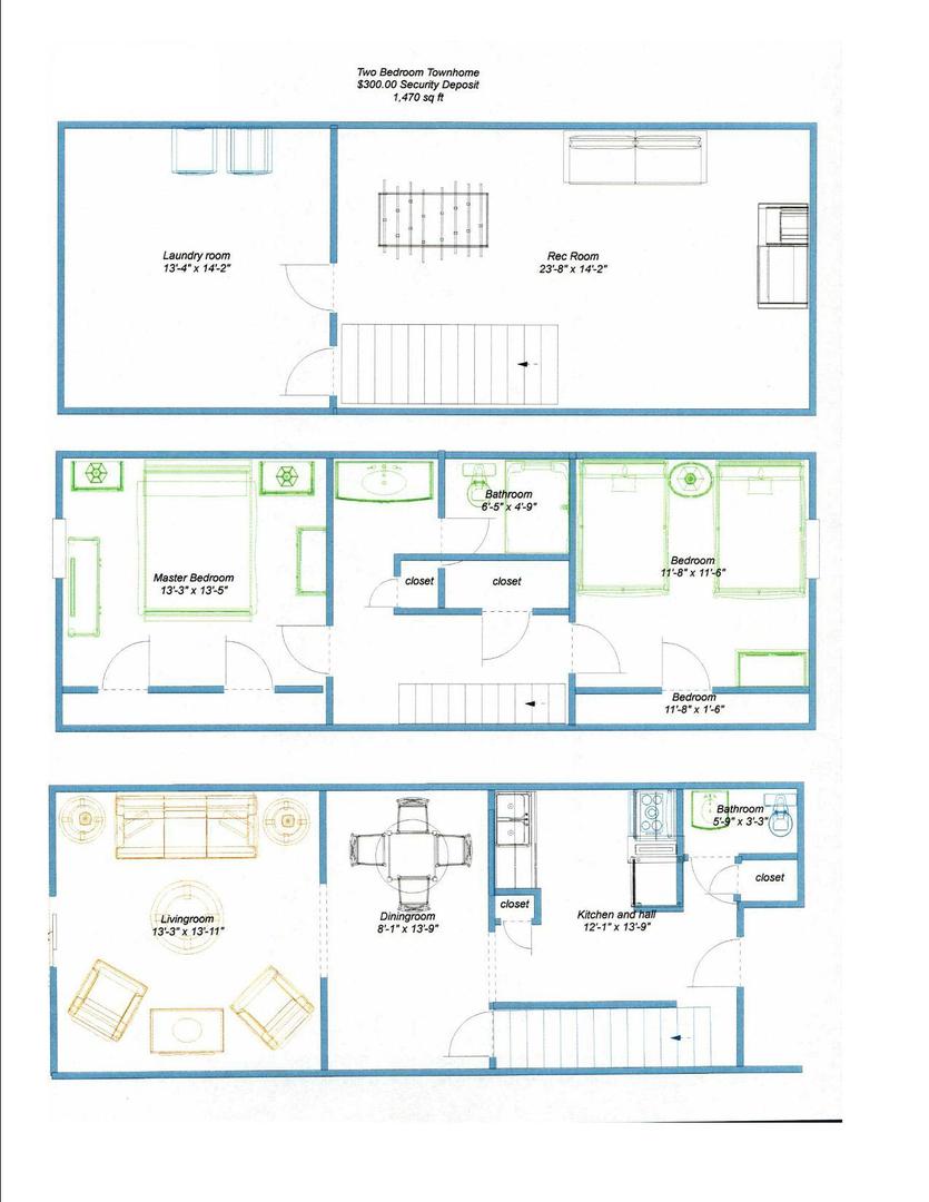 2 bedroom 1.5 bath townhome with 3 levels